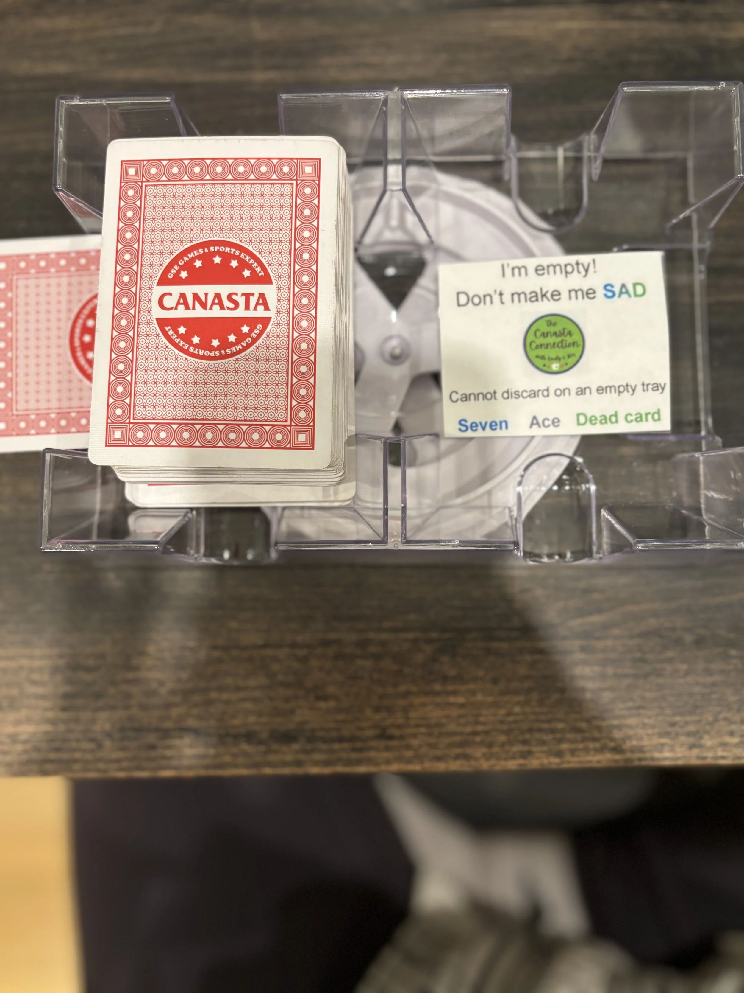 This is so not necessary but it’s so fun and will be the hit of the canasta game. The automatic card dealer does not have to be specific to canasta. Set it to how many cards you would like to deal and the direction, press a button, and it will do the rest.